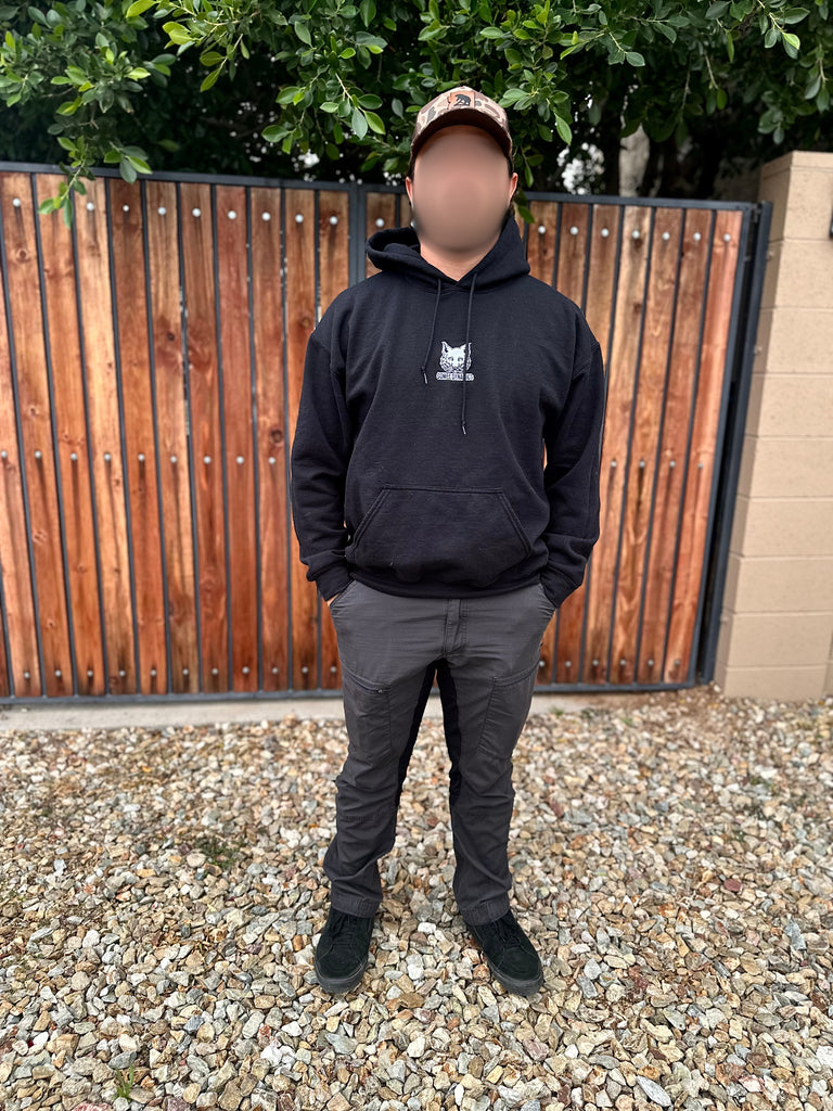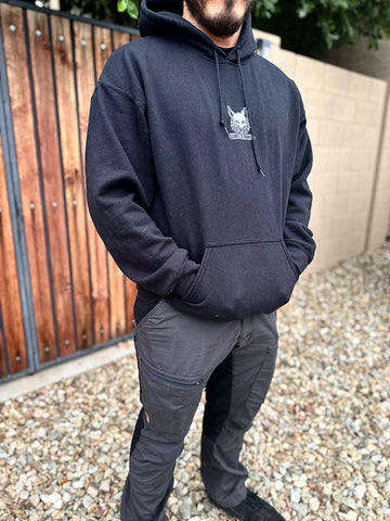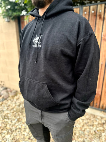 Our logo embroidered on heavy Gildan hoodies. See pictures for the size chart. These are in stock and ready to ship.